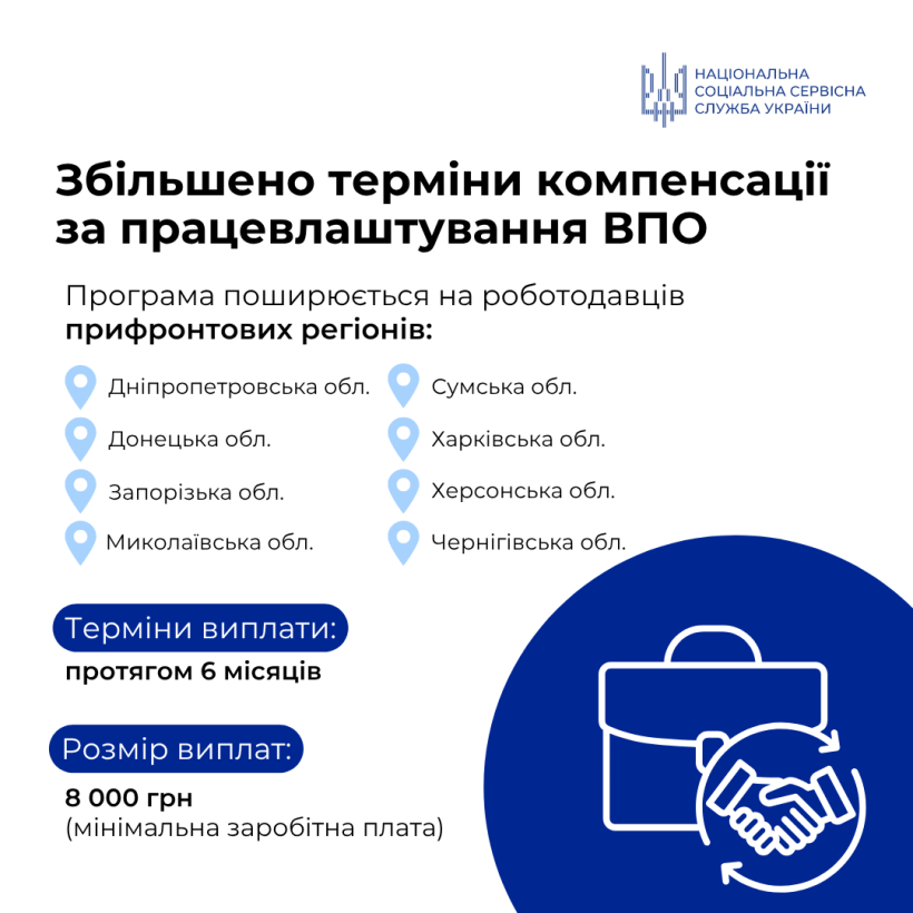 Програму розширено для роботодавців, які здійснюють діяльність у Дніпропетровській, Донецькій, Запорізькій, Миколаївській, Сумській, Харківській, Херсонській та Чернігівській областях.